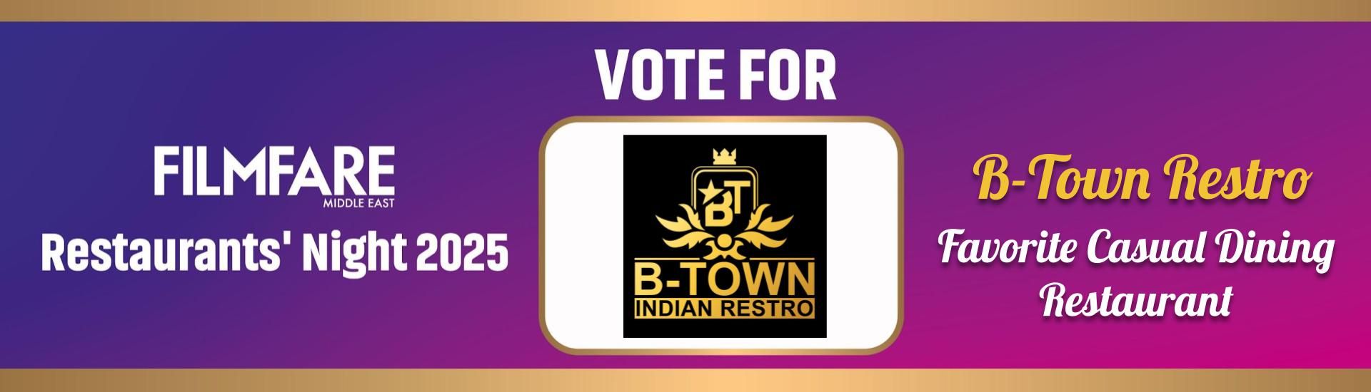 B-TOWN RESTRO is nominated in the category of Favorite Casual Dining Restaurant, please cast your vote below.